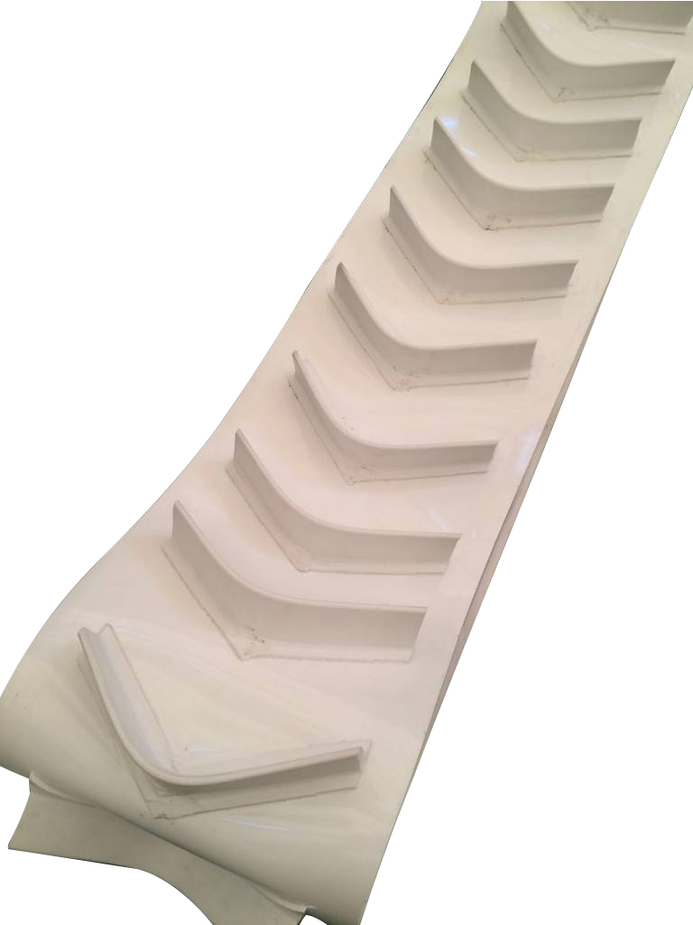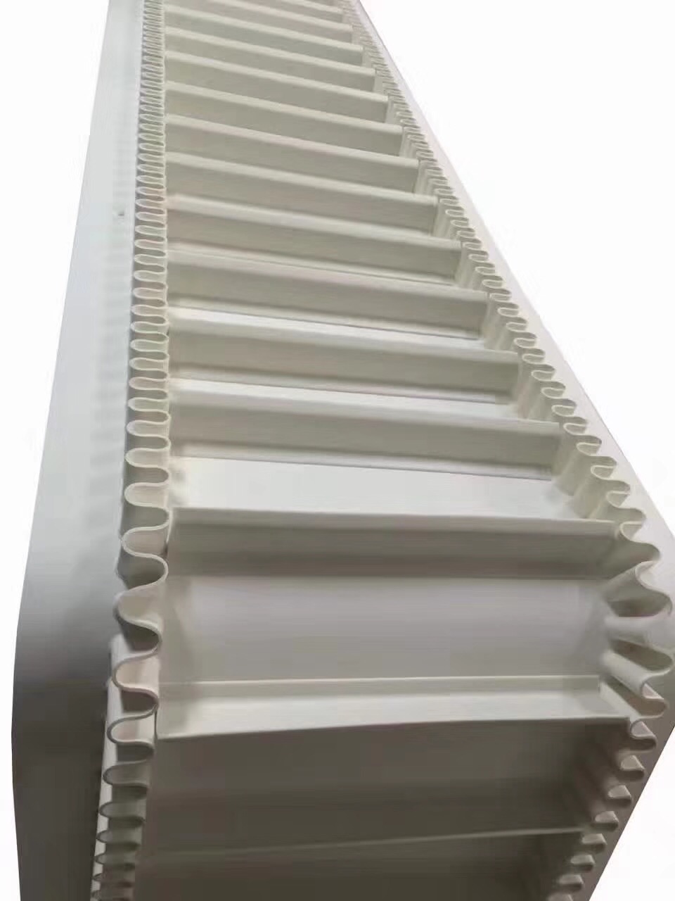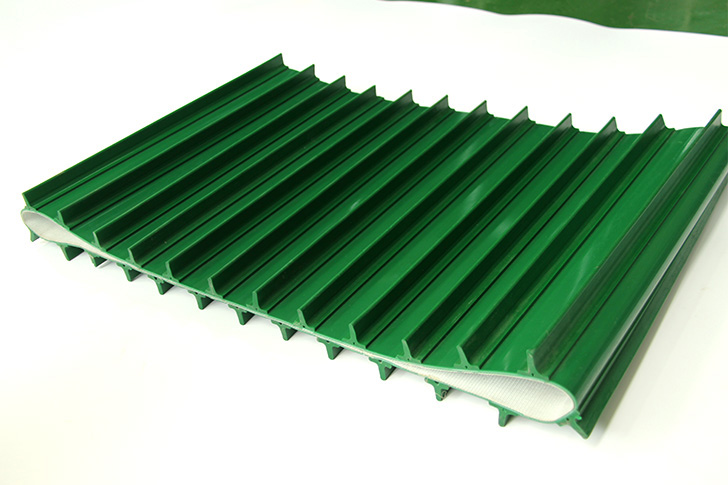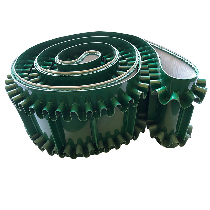 裙邊輸送帶分為:有裙邊無(wú)隔板輸送帶和有裙邊有隔板輸送帶兩種。能使各種散裝物料以0-90度作任意傾角連續(xù)輸送、具有輸送傾角大、使用范圍廣、占地面積小。無(wú)轉(zhuǎn)運(yùn)點(diǎn)、減少土建投資、維護(hù)費(fèi)用低、輸送量大等特點(diǎn),解決了普通輸送帶或花紋輸送帶所不能達(dá)到的輸送角度。波狀擋邊輸送帶可根據(jù)要求設(shè)計(jì)成一套完整輸送系統(tǒng),避免了間斷輸送和復(fù)雜輸送的提升系統(tǒng)。